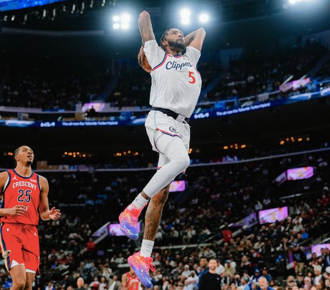首節(jié)比賽,科林斯上來(lái)連續(xù)扣籃得手,快船也占據(jù)場(chǎng)上主動(dòng),大洛佩斯和鄧恩三分命中,小瓊斯反擊暴扣取得18-8領(lǐng)先,鵜鶘隨后拿分止血,小瓊斯三分命中,倫納德突破打成2+1,隨后反擊扣籃得手,快船進(jìn)一步拉開(kāi)分差,費(fèi)爾斯上來(lái)內(nèi)突外投連續(xù)拿分止血,尼德豪澤最后兩罰全中,首節(jié)快船43-32領(lǐng)先。
