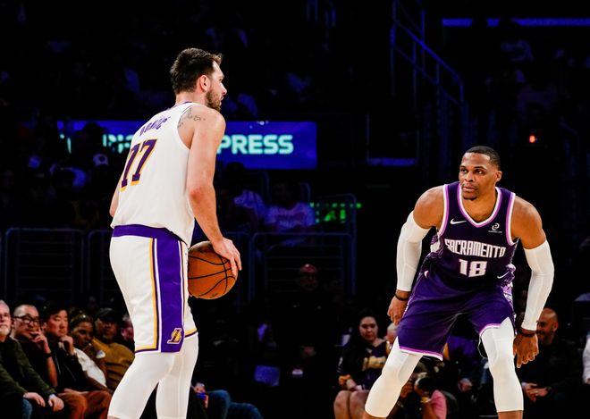節末東契奇繼續強攻,第一節湖人36-18國王。進入第二節,肯納德續上三分,蒙克折疊暴扣,老詹繼續造殺傷,當蒙克吃到技犯時,里夫斯和東契奇都想去罰球,最終給了里夫斯。此后克萊伯隔扣,里夫斯迎射中鋒雷諾,東契奇繼續喂餅艾頓,國王這邊則是威少連續單打,包括大空位的三分球,國王逐漸追上來。節末東契奇命中超遠三分,威少繼續沖擊上籃,半場結束時湖人64-49領先國王。進入下半場,艾頓又出現脫手情況,德羅贊和威少帶隊一路追到只差10分。危急時刻,老詹下順暴扣止血。