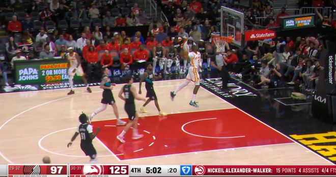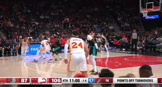 常規賽,老鷹主場135-101戰勝開拓者。