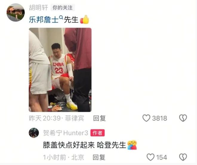 在這兩場世預賽中,來自廣東男籃的胡明軒都沒有能夠進入比賽大名單。起初不少球迷認為是胡明軒的狀態(tài)問題,畢竟他本賽季表現(xiàn)一直比較一般。不過據(jù)賀西寧在社交媒體上給胡明軒留言中透露,胡明軒是出現(xiàn)了膝蓋受傷的情況,希望他能夠盡快痊愈。胡明軒的膝蓋問題其實不是一天兩天了,他之前就因為膝蓋問題缺席過幾場比賽。此次在中國男籃國家隊集訓,胡明軒的膝蓋傷病應該是有些復發(fā),郭士強這才沒有讓他進入比賽名單。